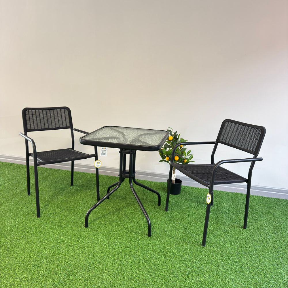 Set Urban Cafe, masa si 2 scaune, plastic / metal, Negru