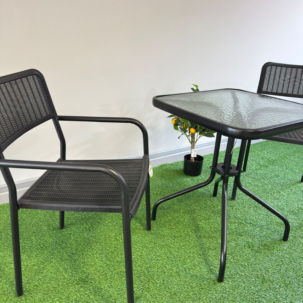 Set Littlerock Rattan, masă și 2 scaune, plastic / metal, Negru