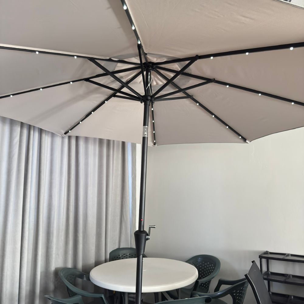 Umbrelă soare, cu iluminare,pe picior, diametru 2,7 m, Bej