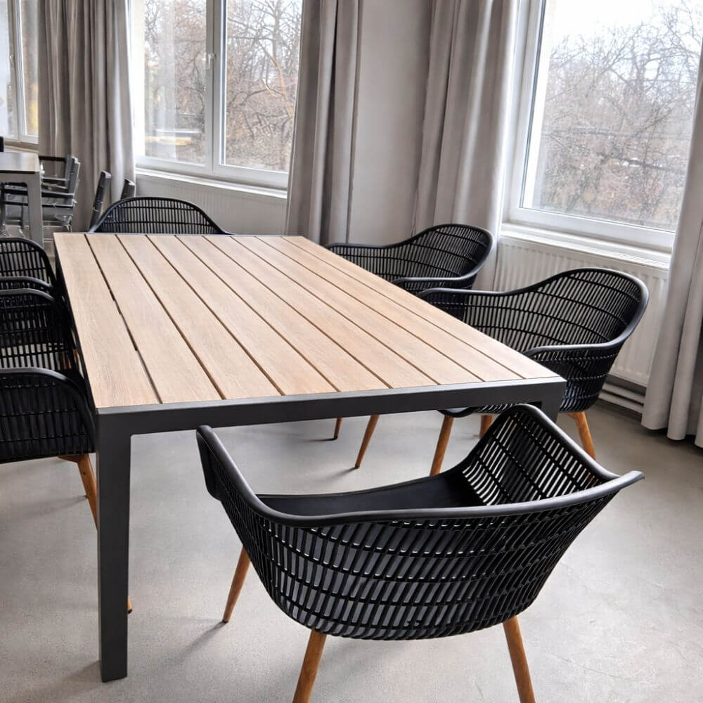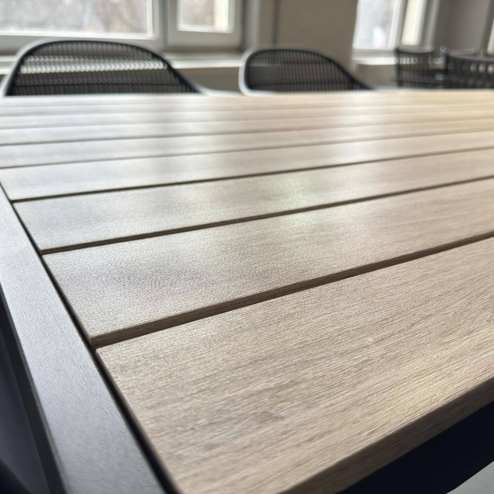 O masă modernă ideală pentru terasă, grădină sau balcon. Designul minimalist, cu blat din sticlă securizată și cadru metalic robust, oferă eleganță și stabilitate. Nuanța antracit adaugă un aer sofisticat, ușor de integrat în orice decor. Perfectă pentru