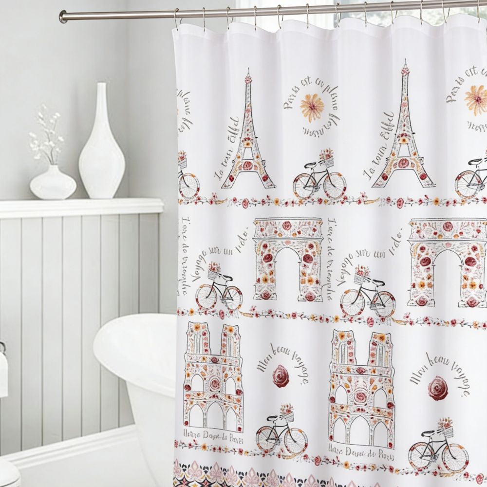 Perdea de baie Tour de France, 180x180, roșu/galben. Cu 12 inele din plastic în set.