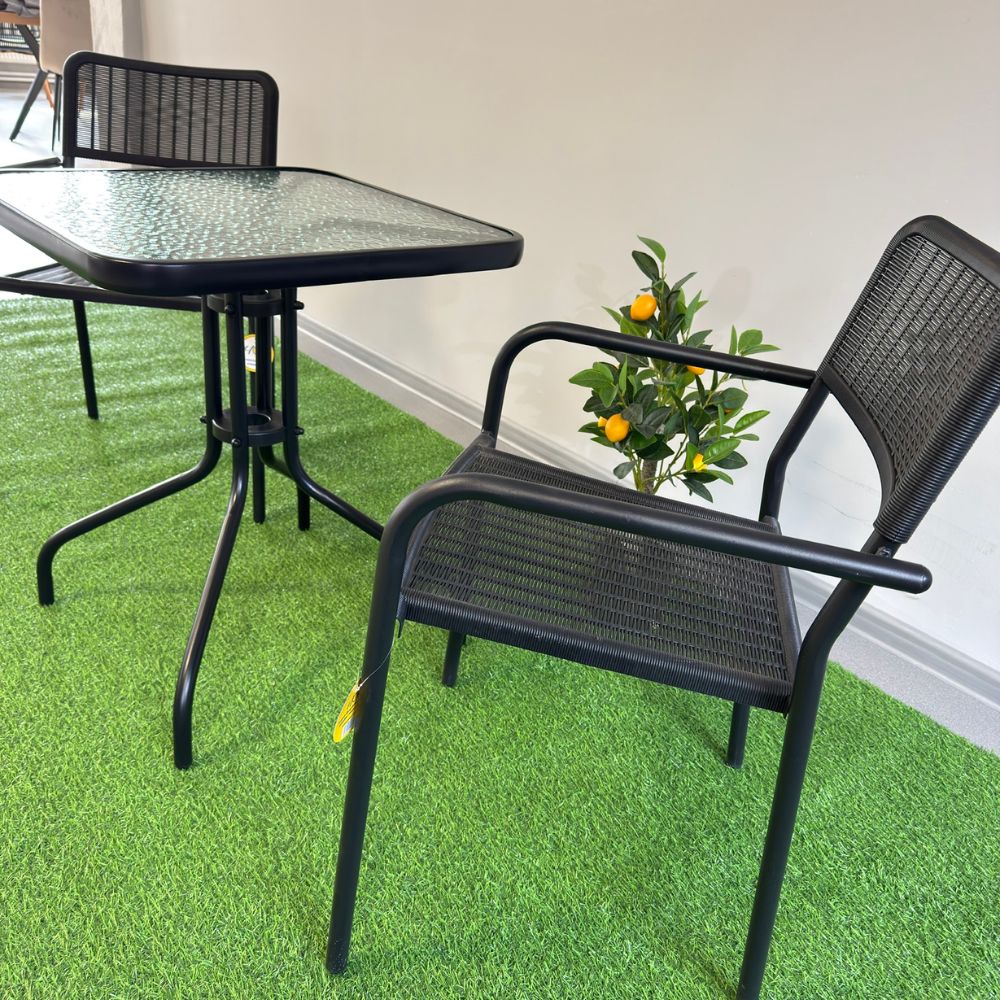Set Littlerock Rattan, masă și 2 scaune, plastic / metal, Negru